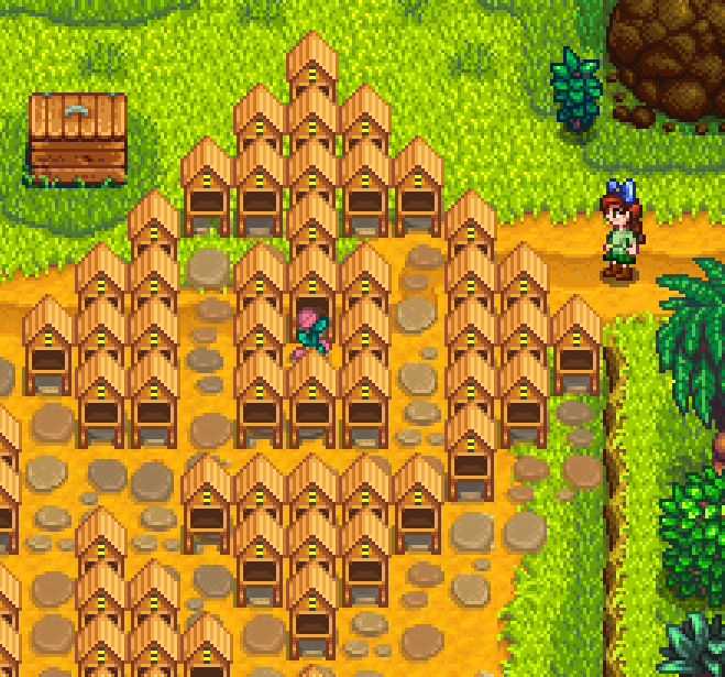 Layout tip: Cluster bee houses around one flower patch like they’re forming a tiny honey cult. Don’t harvest the flower. Let it live its best life.